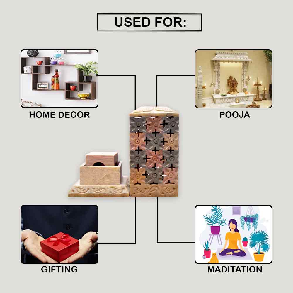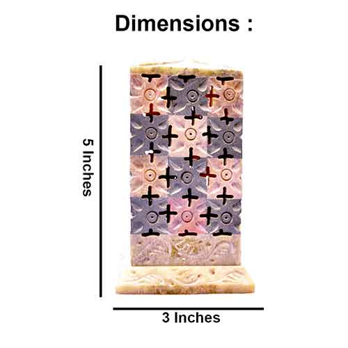DIMENSIONS (L x B x H) (IN INCH) : 3 x 3 x 5 MATERIAL : Marble Soapstone COLOUR : Natural Stone. MULTIFUCTIONAL: This stand can also be used as candle holder, Dhoopbatti holder, Incense stick holder. QUALITY : This Incense stick holder is handmade from soapstone by the Indian Artisans with High-quality craftsmanship ensures durability and longevity HANDMADE : The product is handmade and 100% made from natural raw material, no harsh chemicals are released when natural stone come in contact with heat unlike ceramic, plastic and wood products.