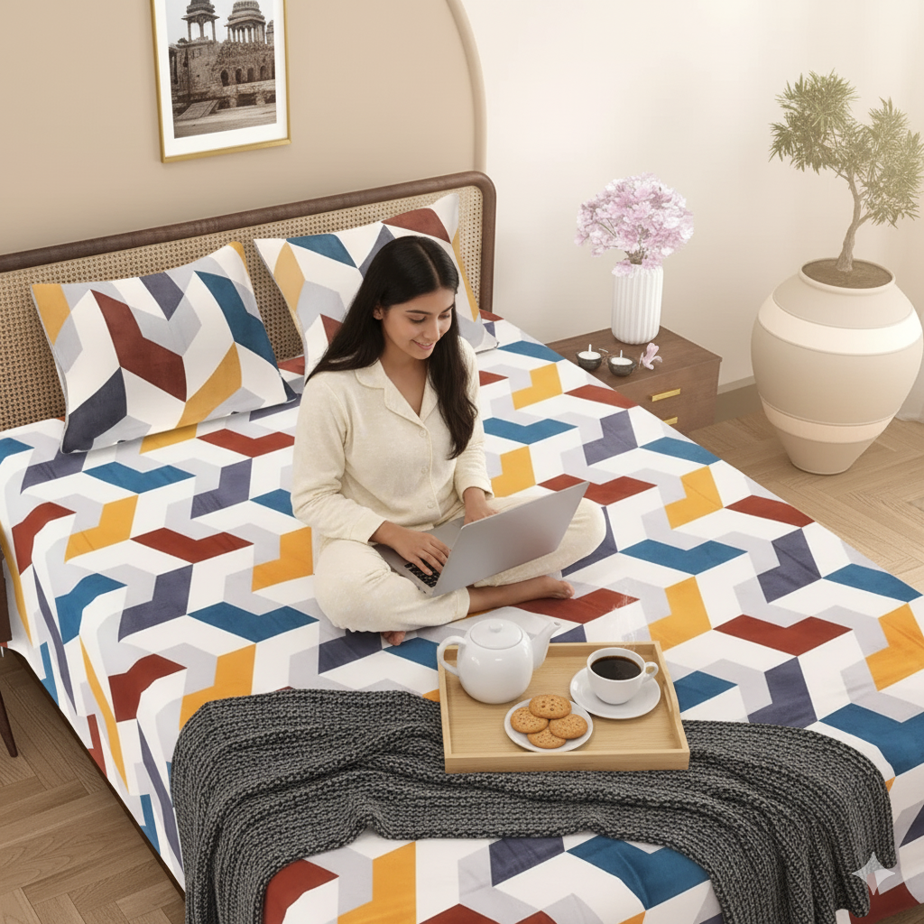 Quality That Lasts: Tired of fabrics that lose their charm after a few washes? Our bedsheet promises enduring quality that doesn't fade or shrink, ensuring a long-lasting investment. Don't let the summer heat disturb your sleep. Our lightweight yet quality material ensures a cool and refreshing sleep, making hot nights more bearable.