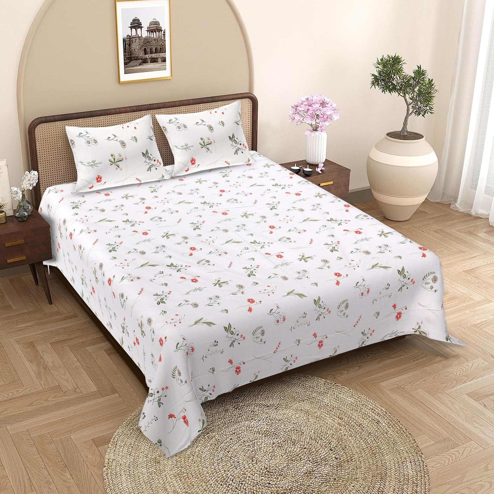 Quality That Lasts: Tired of fabrics that lose their charm after a few washes? Our bedsheet promises enduring quality that doesn't fade or shrink, ensuring a long-lasting investment. Don't let the summer heat disturb your sleep. Our lightweight yet quality material ensures a cool and refreshing sleep, making hot nights more bearable.