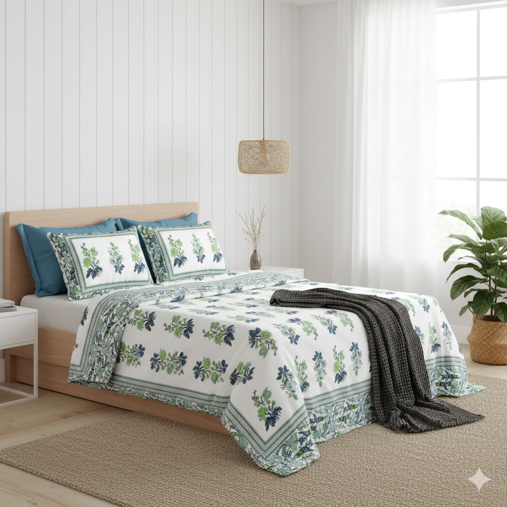 Quality That Lasts: Tired of fabrics that lose their charm after a few washes? Our bedsheet promises enduring quality that doesn't fade or shrink, ensuring a long-lasting investment. Don't let the summer heat disturb your sleep. Our lightweight yet quality material ensures a cool and refreshing sleep, making hot nights more bearable.