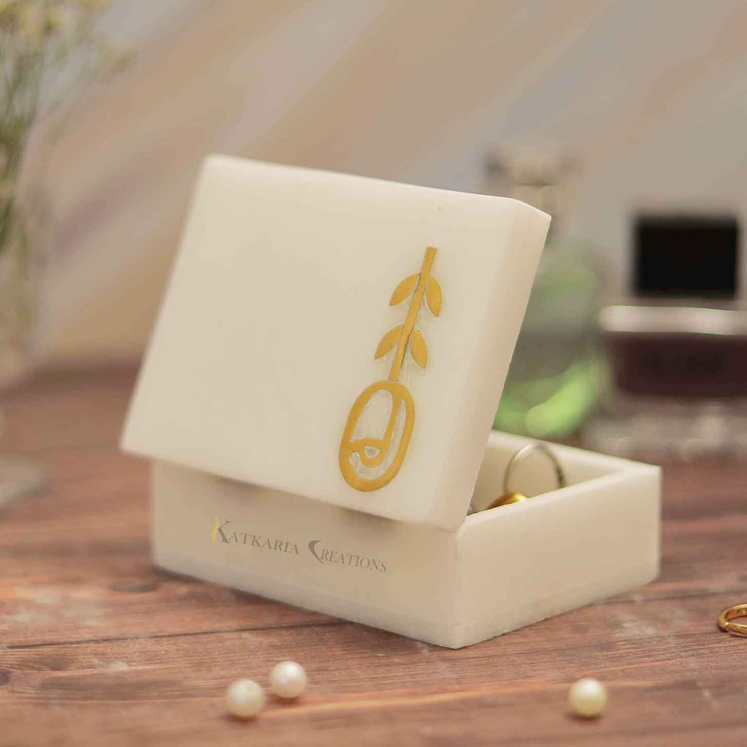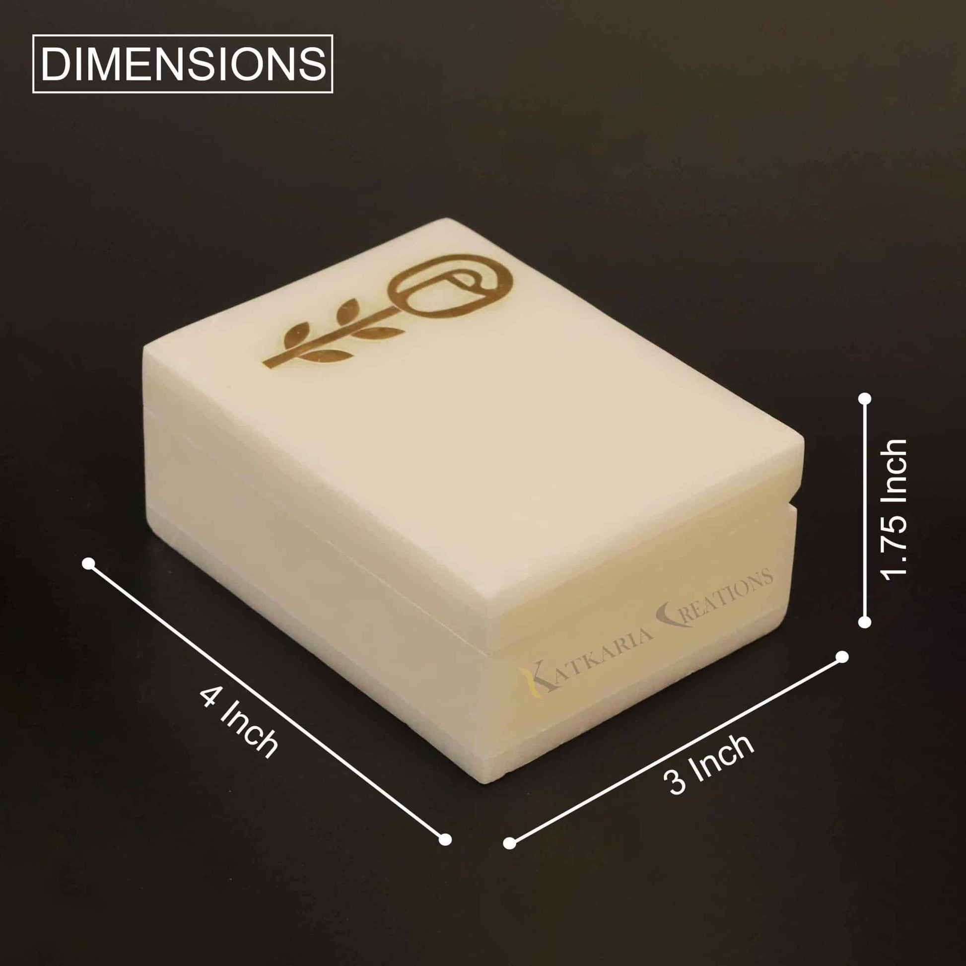 Box Contains : One Marble Jewellery Box Material – Marble & Brass Total Dimensions in (Inches) -4? L X 3? W X 1.75? H This marble jewellery box is perfect for storing jewellery, serving dry fruits, keeping knick-knacks, or enhancing home & office decor. This elegant marble jewellery box is a perfect, memorable gift, showcasing exquisite craftsmanship for any special occasion. Handcrafted by Indian Artisans: Katkaria Creations takes immense pride in promoting traditional Indian craftsmanship. Every piece is handcrafted with precision and passion by skilled artisans, ensuring the highest quality and attention to detail. Packaging: Each jewellery box is carefully packaged to ensure it arrives in pristine condition. It is securely wrapped to protect against any damage during transit, ensuring that you receive a flawless piece of art.