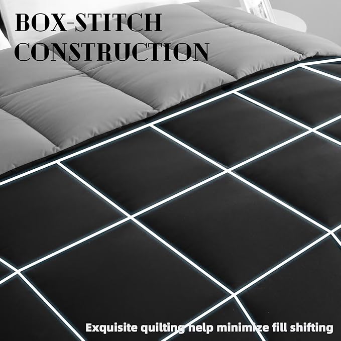 - *Box-stitch construction* Keep the fill from shifting or clumping, ensuring a smooth look and soft feeling for long time. Four duvet loops-sewn corner, help the comforter to grab a duvet cover.