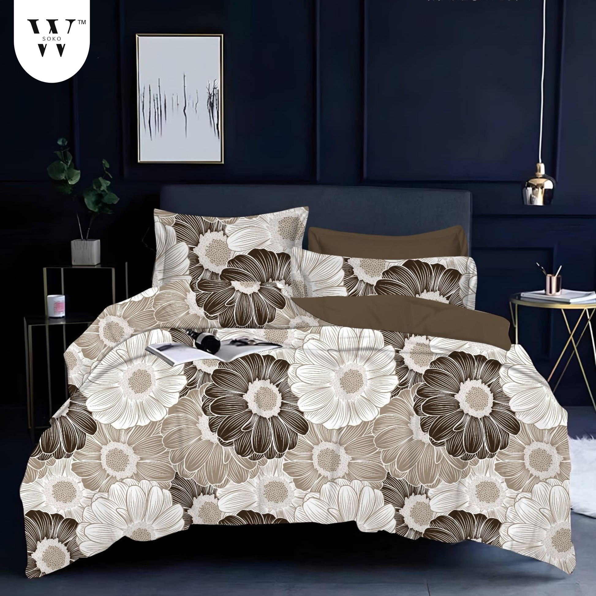 This queen-size bedsheet set is crafted from 100% cotton, offering ultimate comfort and breathability. The soft, cool feeling of the fabric ensures a great night's sleep, perfect for all seasons. The beautiful lilac floral pattern adds a touch of elegance to any bedroom décor.