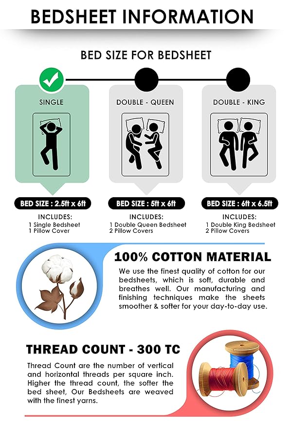 Package Contents: 1 Double Bedsheet and 2 Pillow Covers